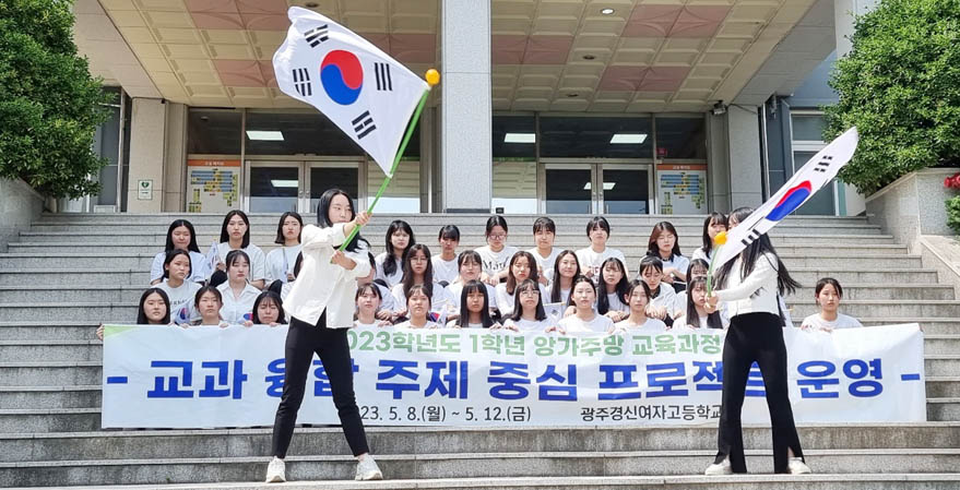 광주경신여고가 지난 8~12일 1주일 동안 전교생이 참여하는 ‘앙가주망’ 주간을 운영했다. 14일 광주경신여고에 따르면 앙가주망 주간은 공동체의 가치를 강화해 현재 및 미래 사회에 대응하는 시민 양성을 목적으로 각 학년이 각기 다른 주제로 실시됐다. 1학년은 ‘지역과 더불어 살기’, 2학년은 ‘국가와 더불어 살기’, 3학년은 ‘세계와 더불어 살기’로 각각 진행됐다.